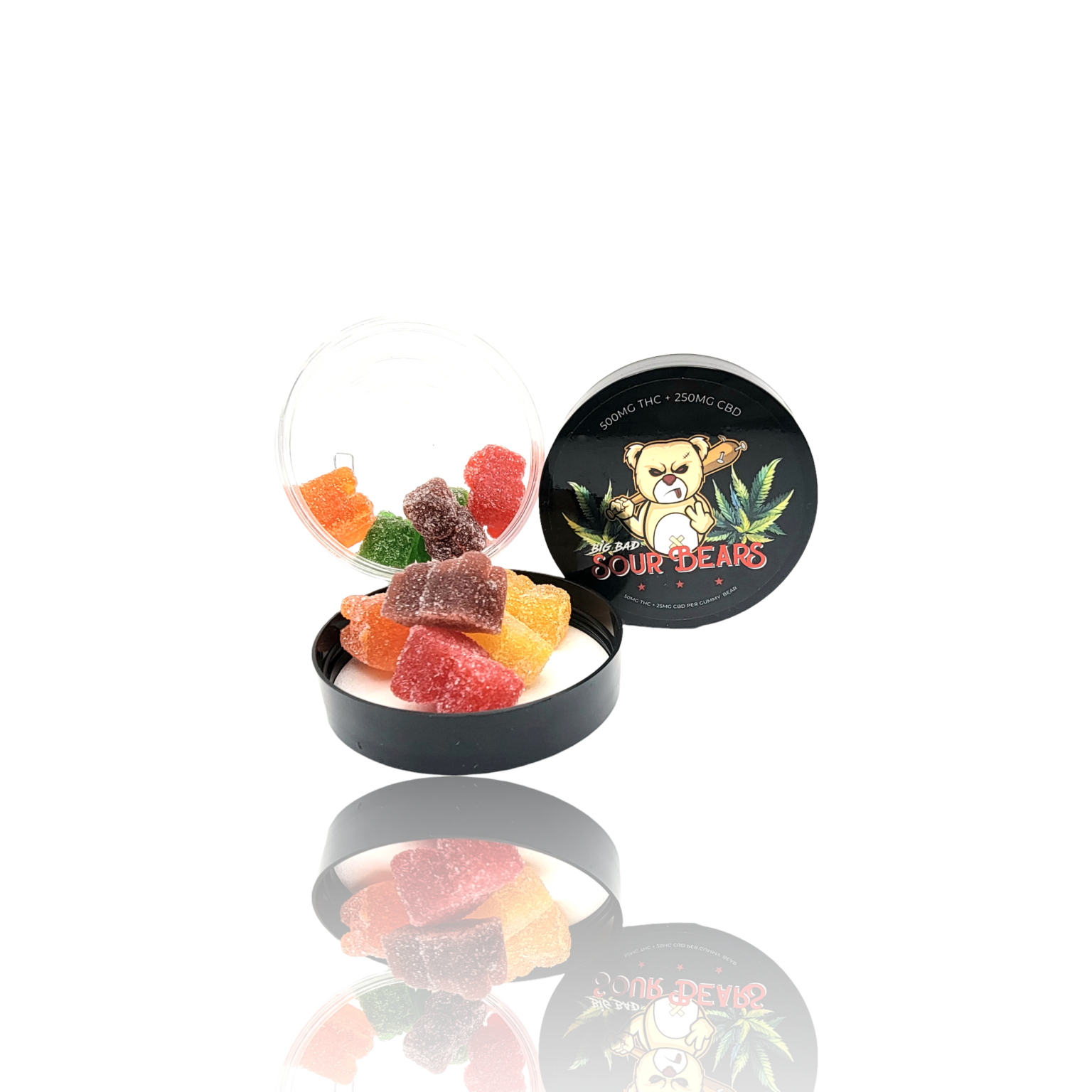 Sour Bears consists of 10 bears, each bear contains 50mg THC + 25MG CBD (Indica)
