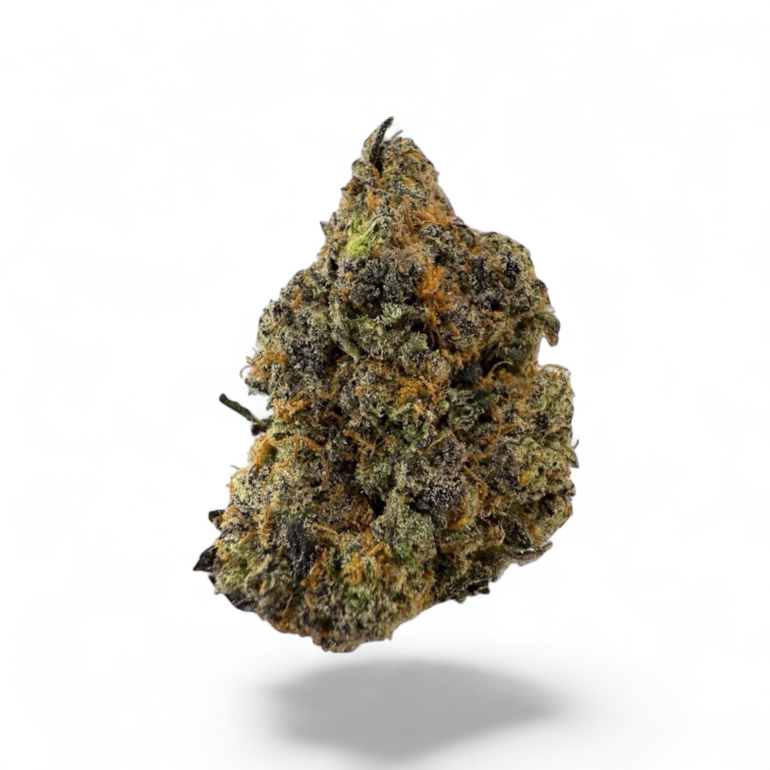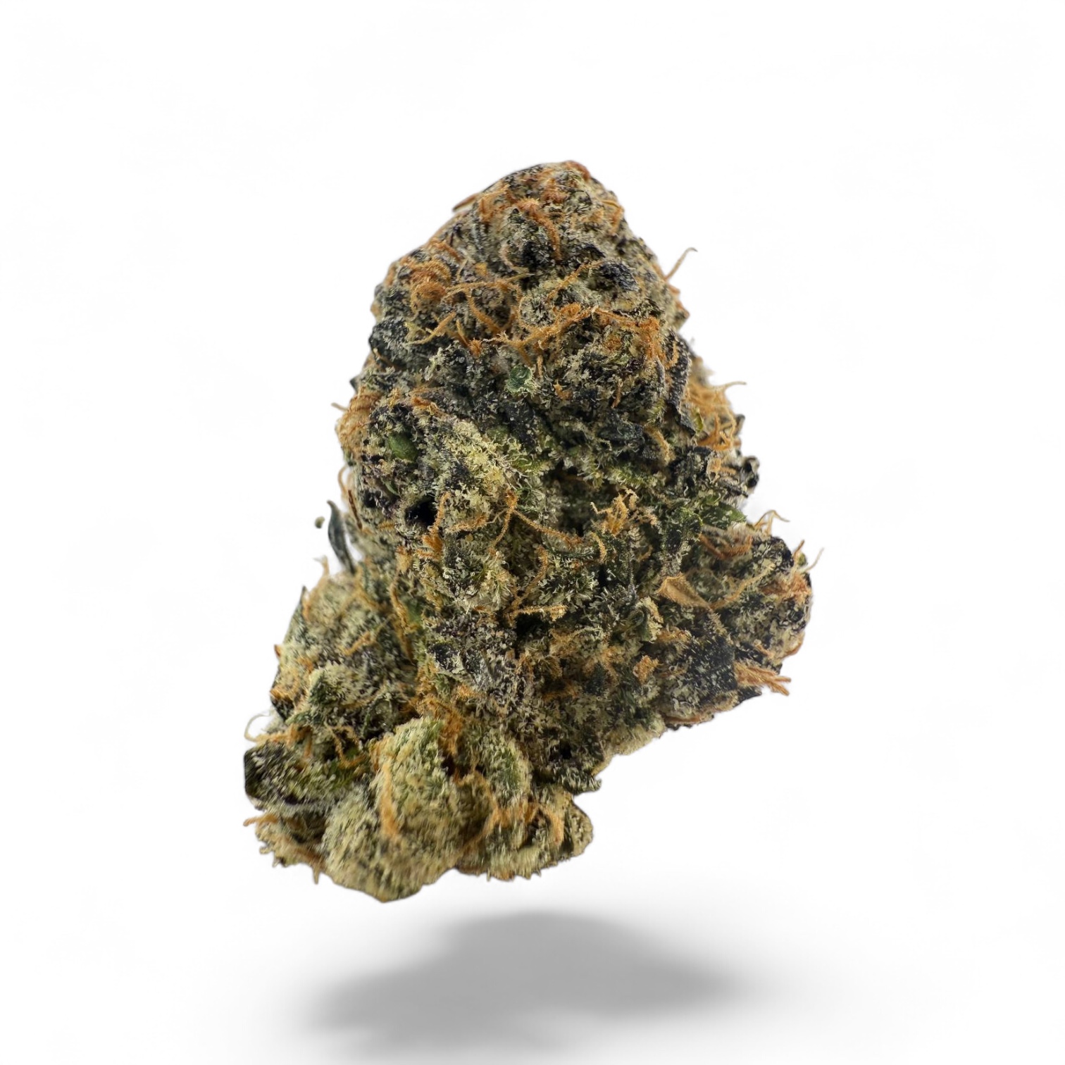 Blow Pop, also known as “Blow Pops” or “Blow Popz,” is an indica dominant hybrid strain (70% indica/30% sativa) created through crossing the classic OG Kush X Sunset Sherbet strains. Named for your favorite childhood treat, Blow Pop packs a delicious sugary flavor and soothing high that will have you feeling like you’re a kid again during summer vacation. Like the candy, Blow Pop has a sweet and sugary fruity bubblegum candy flavor with touches of gassy diesel to it, too. The aroma is of sweet fruity bubblegum accented by gassy diesel and fresh earthy spices. The Blow Pop high is just as nostalgic, with happy, lifted effects that will have you soaring high and feeling blissful for hours on end. You’ll feel super relaxed from head to toe with this bud, free of any physical aches or pains and pretty sedated at times. Thanks to these effects and its super high 20-34% average THC level, Blow Pop is often chosen to treat experienced patients suffering from a variety of conditions including chronic pain, cramps or muscle spasms, depression or mood swings and appetite loss or nausea. This bud has dense and oversized triangle-shaped dark olive green nugs with deep purple undertones, lots of dark amber hairs and chunky, purple-tinted white crystal trichomes.